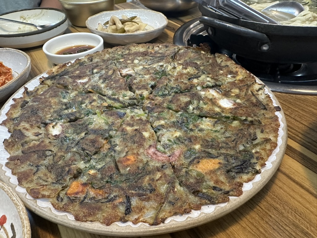 숙소로 돌아와 아이들을 씻기고, 지난번 들렀던 성게보말죽집으로 향했다. 여전히 감칠맛이 깊었다. 어른들은 땅콩막걸리와 톳부추전을 곁들였다. 와이프 친구의 아이는 인사성이 밝아 “잘 먹었습니다”를 잊지 않았다. 사장님이 기분 좋게 간식을 서비스로 주셨다. 우리 아이도 그 모습을 보고, 며칠 사이 “감사합니다”를 자연스럽게 말하기 시작했다. 서로에게서 배우는 힘이란 참 대단하다.